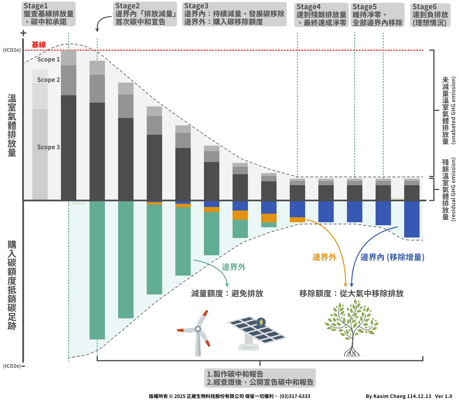 只有在企業盡了最大努力減量後,那些受限於現有技術真的消不掉的「尾數」,才允許購買高品質碳權來抵銷 。 - 碳中和管理計畫: