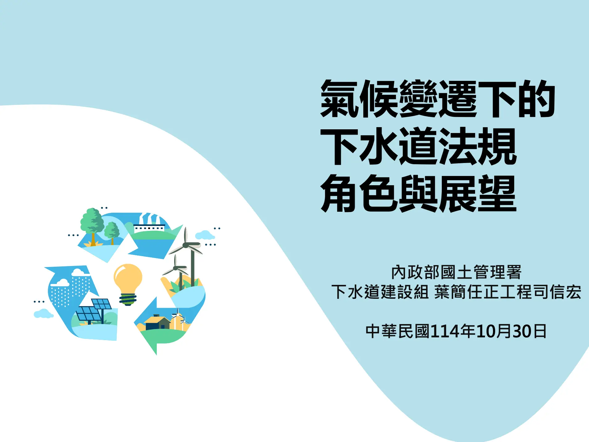 另為落實 2050 淨零碳排轉型,這次修法也從下水道工程規劃、建設及管理等層面,考量急降雨、旱澇等不同氣候情境的因應措施,同時納入再生水產製、下水污泥再利用、沼氣發電等下水道再生能源利用與發展策略,讓下水道事業邁向永續發展。