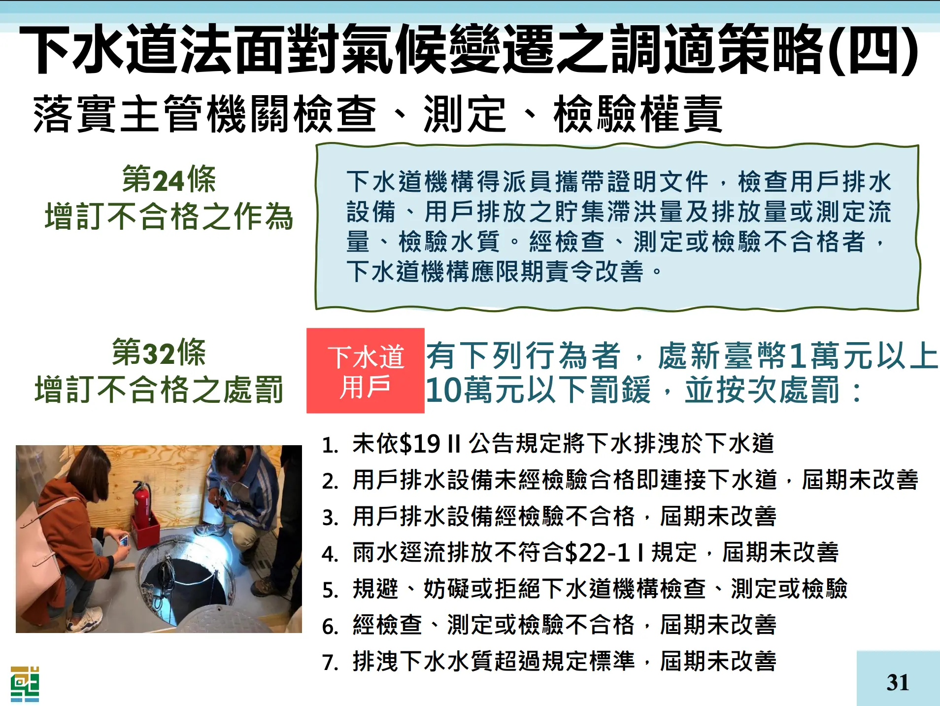 原文出處 : 內政部修「下水道法」 劉世芳:強化下水道監管機制 嚴懲違法行為